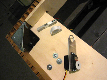 table is made from: The longer sides of the table are reinforced with 1/2" Baltic birch plywood. The servo motors and load cells are mounted with custom-made aluminum elements onto the plywood. The